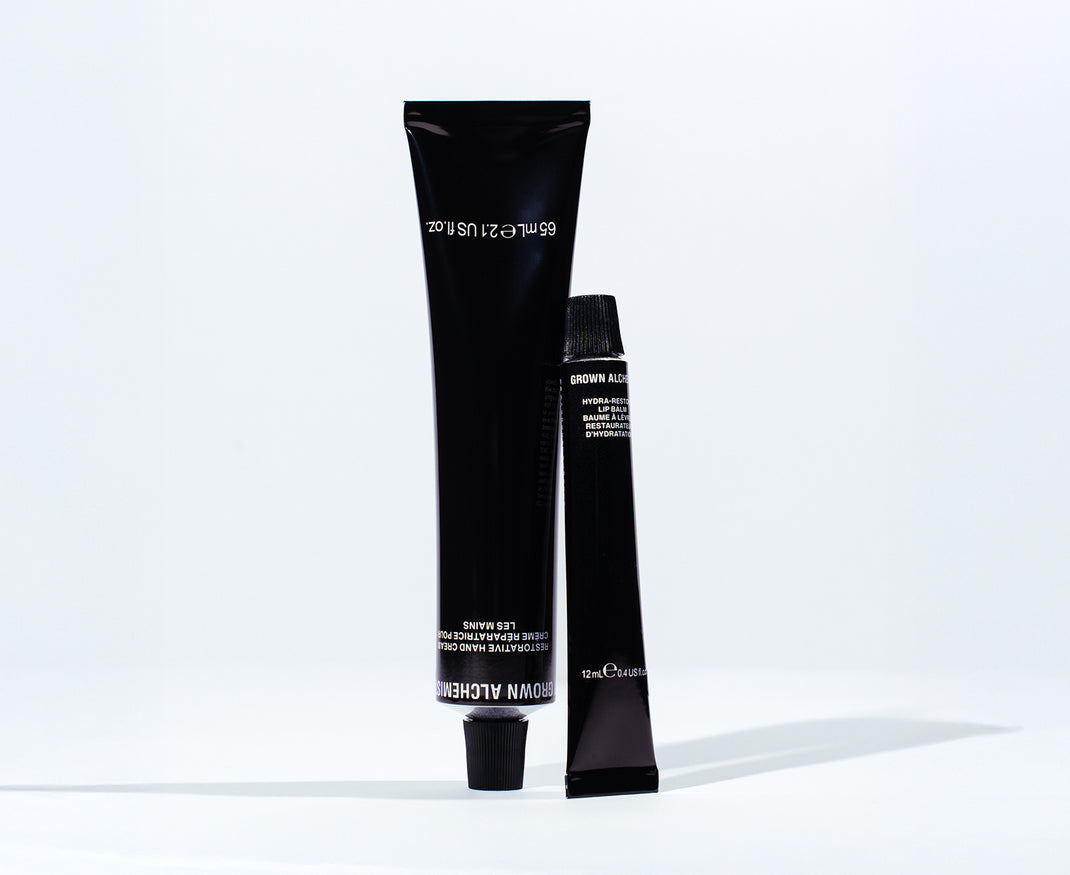 Restorative Hand Cream + Hydra-Restore Lip Balm.